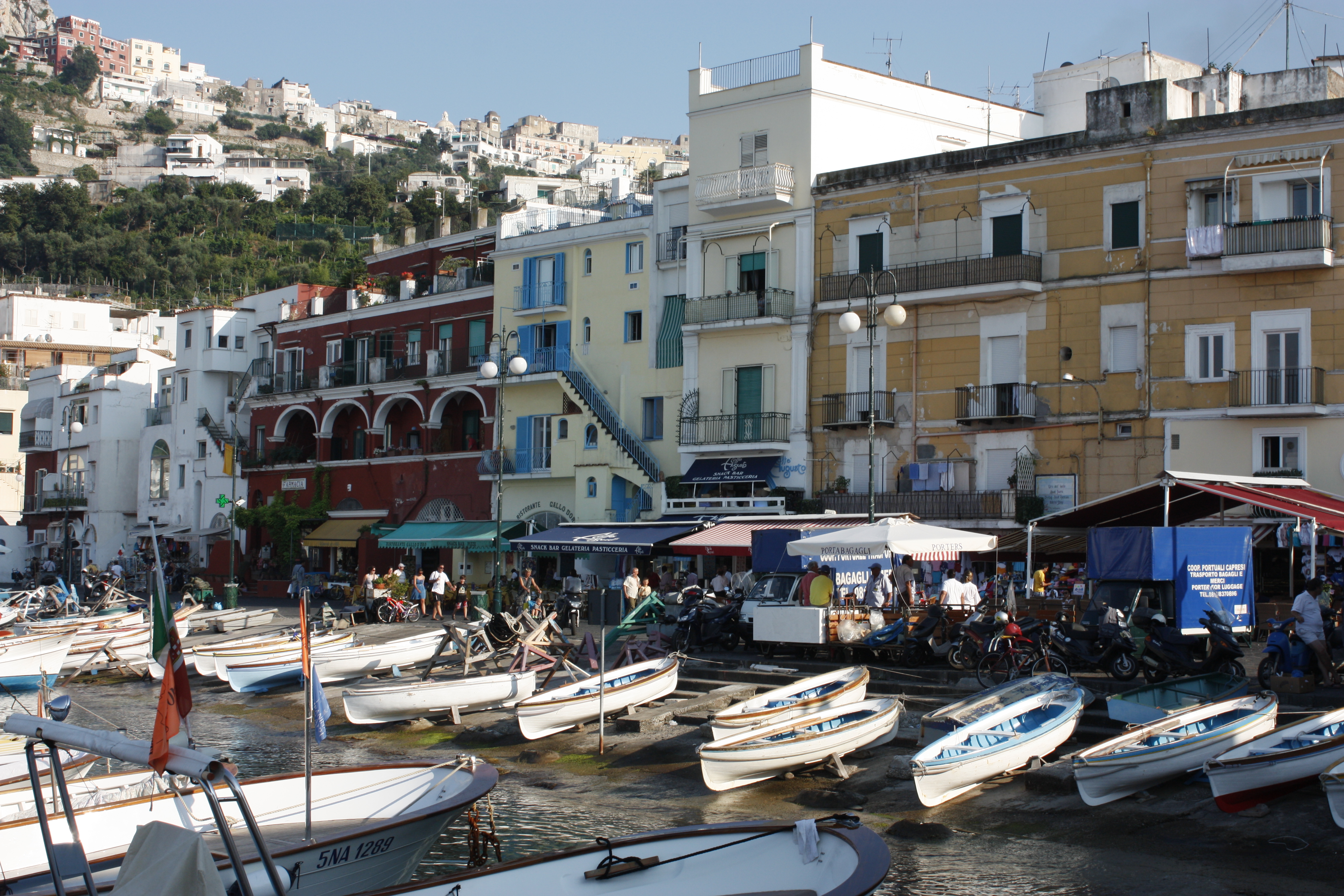 När vi kliver i land i öns huvudhamn Marina Grande möts vi av pittorska färglada hus uppradade längs med vattnet. Små båtar guppar lugnt utanför. Känslan jag får är att detta är en perfekt liten plats, en ”get away” mitt ute i ingenstans. För även om fastlandet och Sorrento hamn ligger endast 20 minuter bort är känslan av avskildhet och exklusivitet påtaglig.