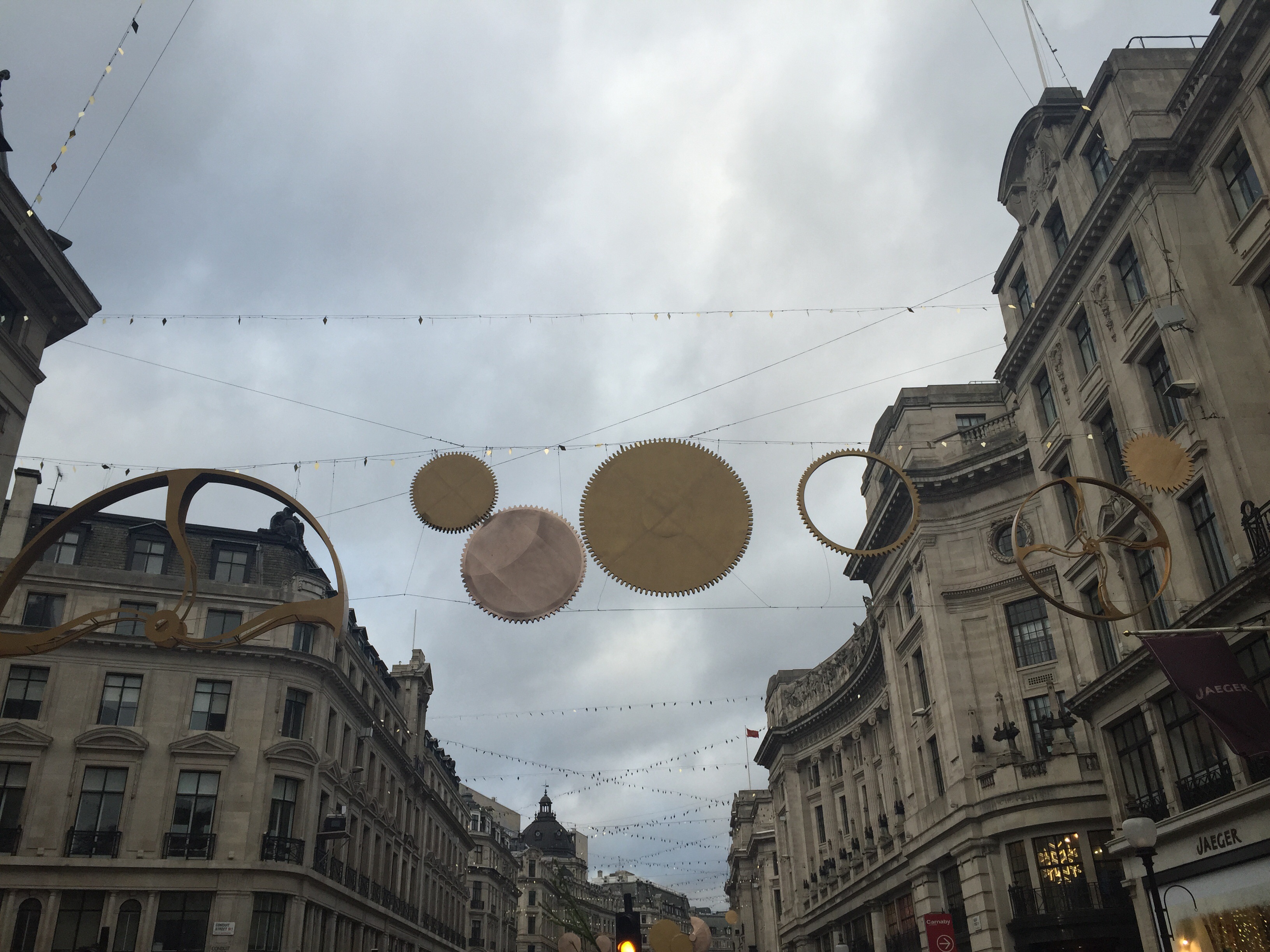 Ljumma vindar sveper över Londons gator och termometern visar på 16 grader – en rätt så angenäm temperatur för att vara i mitten på november. Det är söndag eftermiddag och vi tycker det är anmärkningsvärt mycket människor ute på stan. Regent Street spärras av för biltrafik och man har börjat rigga upp en scen. Vidare in på Oxford Street så öppnar sig plötsligt himlen – och stora vita snöflingor singlar sakta ner. Förvånade ansikten vänds uppåt, händer sträcks ut – ivriga att fånga en flinga eller två. Det hela liknar lite en kuliss till en Disneyfilm och det tar några sekunder innan vi, och många andra, inser att det mycket riktigt är fejk. Så klart, så här i efterhand – med tanke på temperaturen. Men för en kort stund kändes det väldigt trovärdigt och den där härligt barnsliga julstämningen infann sig för några sekunder. Vi förstår nu vad alla förberedelser beror på och varför alla människor tillsynes vallfärdar mot huvudstadens mest kända shoppinggator – det är i dag som julbelysningen tänds. Tyvärr har vi inte tid att hålla oss kvar då vi har ett flyg att passa – men vi lämnar London med en liten uns av julstämning.