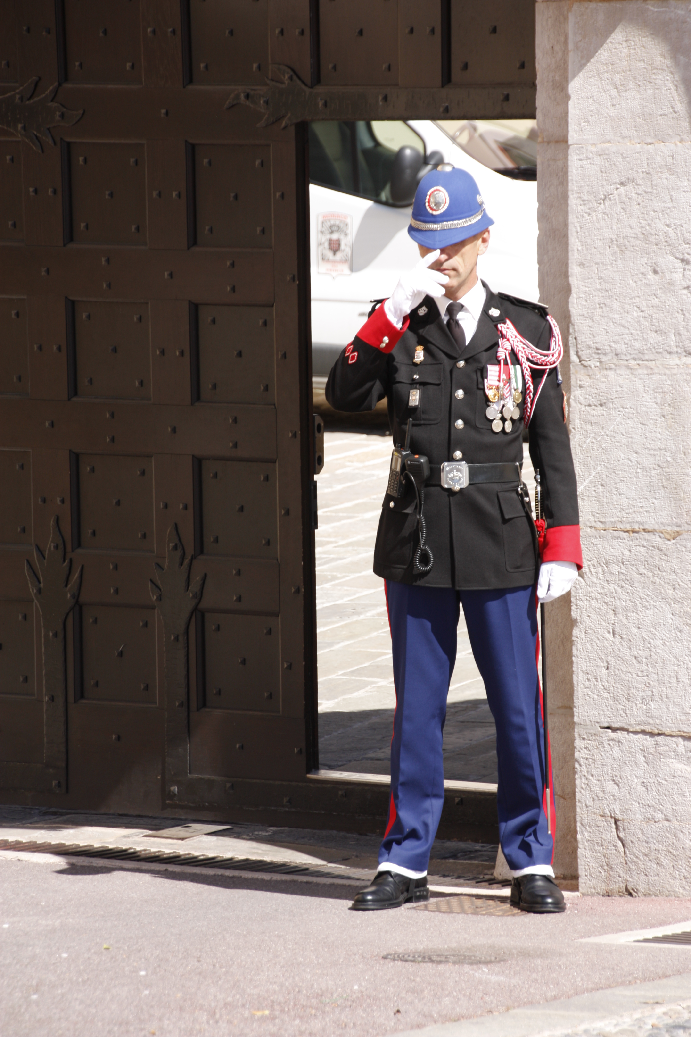 Det är vaktavlösning vid Palais du Prince. Det är fler än vi som tänkt sig att få en skymt av detta skådespel och man får klättra högst upp på tåspetsarna för att överhuvudtaget se någonting. Kring slottet, som är beläget högst upp på en kulle, trängs souvenirbutikerna i små trånga gränder och tar plats från vad som kunde ha varit mysiga serveringar och typiska butiker. Tyvärr är det väl ofta så det blir kring kända sevärdheter. Vi tar oss nedåt igen, genom grönskande trädgårdar. Då och då stannar vi för att beundra utsikten. Den kan man inte klaga på.