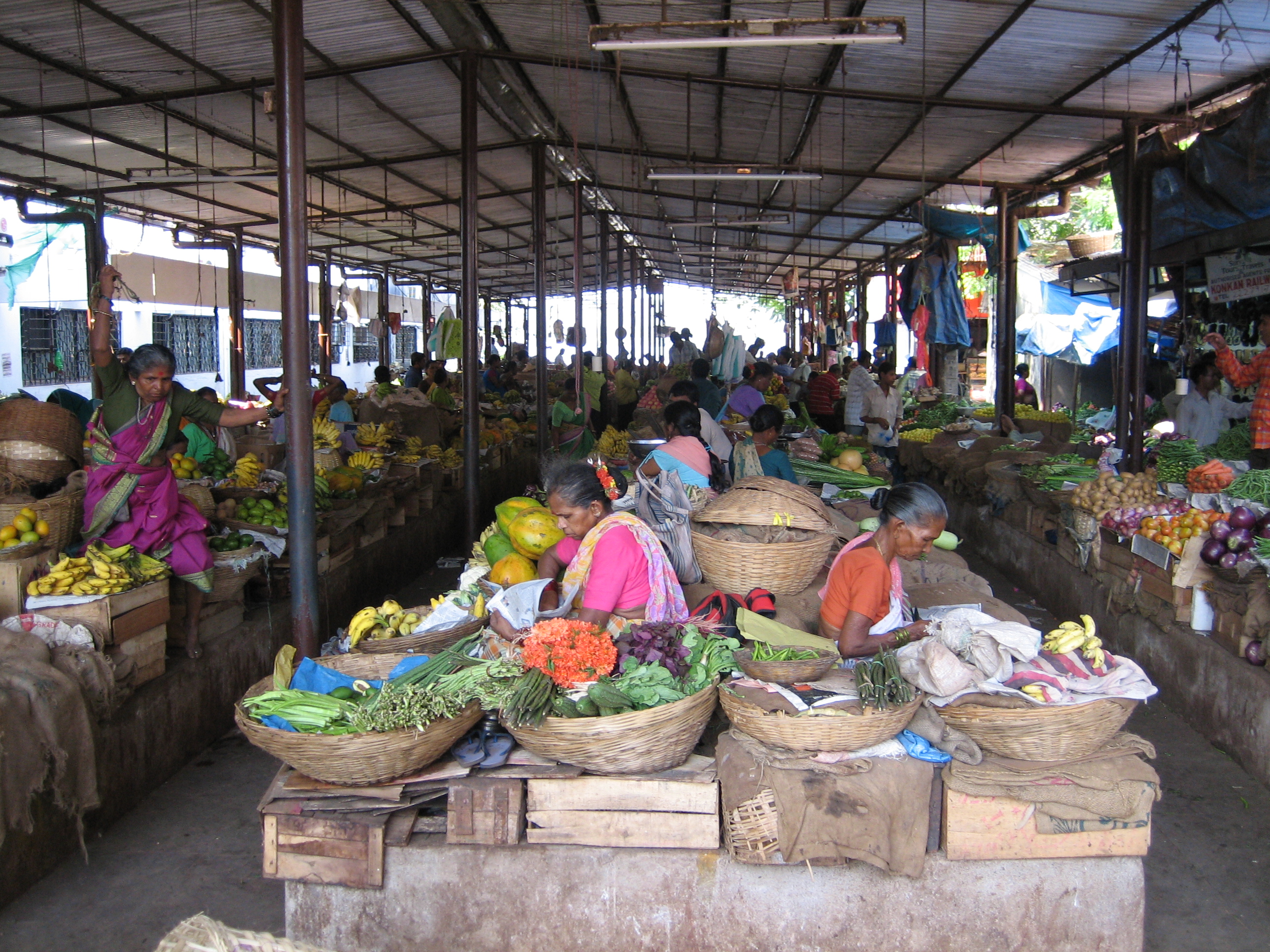 ”Could you take us to a market?” Taxichauffören lyser upp: ”Market? Yes, yes” Förväntansfulla hoppar vi in i taxin. Vi befinner oss i Goas huvudstad Panjim. De vi hitills sett av denna stad har mest varit ett enda kaos och det är svårt att orientera sig. Men nu ska vi på marknad! I mitt inre målar jag upp en bild av vackra indiska tyger, väskor och skor. Och allt till löjligt låga priser. Jiii, här ska shoppas! Plötsligt har vi stannat. Vi tittar ut genom fönsteret och sedan på varandra. ”Market?” Taxichauffören ler belåtet: ”Market, yes!” När vi kliver ur bilen slås vi av en obeskrivlig stank. Det luktar som rutten fisk. Med tveksamma steg rör vi oss mot det som tydligen ska föreställa marknaden. Stanken blir bara mer påtaglig och plötsligt står vi o klafsar med skorna i gamla fiskrester och annan sörja vi helst inte vill veta vad det är. På långa bänkar sitter indier och rensar fisk för glatta livet. Hygien känns som ett helt främmande ord och jag känner att jag blir magsjuk bara av att titta på det. definitivt inget för våra västerländska magar. På andra sidan gången ser vi rader med frukt och grönsaker. På säckväv, mitt i bland de olika stånden sitter indiska kvinnor berädda att sälja det som de har i sina korgar. Här ser ju faktiskt lite trevligare ut, men den fräna fiskdoften gör att vi bara kan stanna några minuter, sedan måste vi ut och andas. Snopna och tomhänta åker vi tillbaks till vårt hotell i Cavelossim. Där kan man ju lugnt säga att vi blev blåsta på vår shopping!