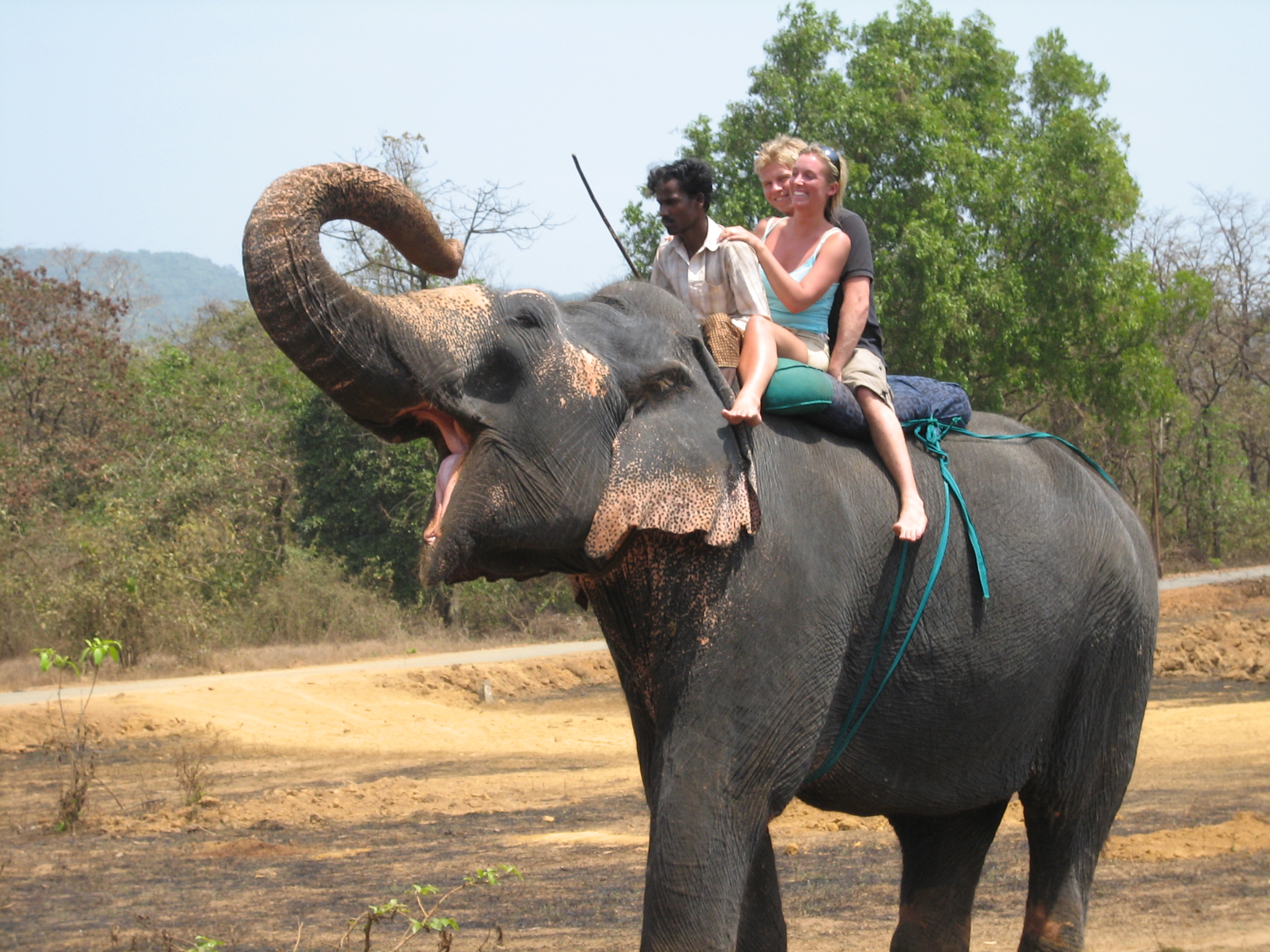 Att elefanter är stora det vet vi. Men man inser nog inte riktigt hur stor förren man sitter gränsle bakom öronen och tittar ner. Jag brukar inte vara speciellt höjdrädd, med detta är svindlande. Och att det inte finns något att hålla i sig i förrutom två taniga axlar gör ju inte saken bättre. De första stegen gör att hela den grå sticksiga ryggen reser sig som en våg. Jag känner hur balansen börjar svikta och kramar reflexmässigt den stackars indierns axlar allt vad jag orkar. Om det gör ont visar han det i alla fall inte. Hon är väl rätt van vid klumpiga turister. Ett par varv kring den öppna planen sedan är åkturen över. Kan ju inte låta bli att tycka lite synd om elefanten. Kan ju inte vara särskilt stimulerande att gå runt runt hela dagarna i ända. I stekande sol och med dumma turister på ryggen dessutom. Men detta är inte hennes enda jobb, förklarar skötaren. Samira, som hon heter, arbetar egentligen på ett sågverk och extraknäcker bara lite här under turistsäsongen.