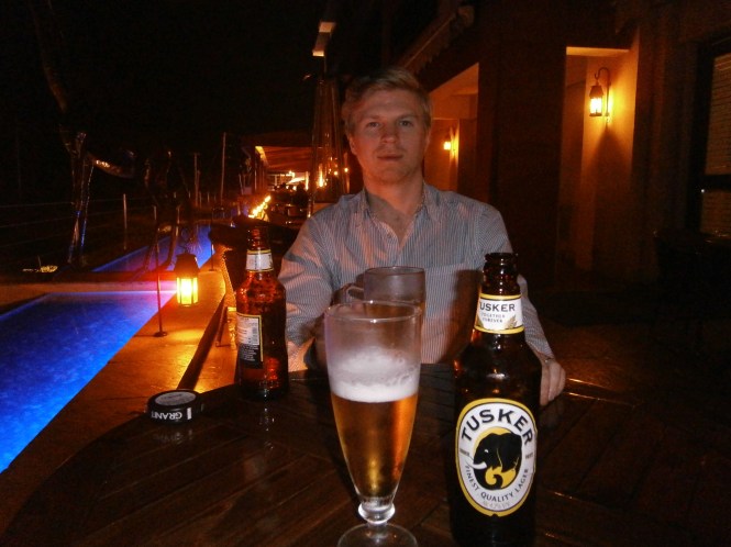 Jomo Kenyatta International Airport, Nairobi Kenya. Luften är frisk, men temperaturen godkänd för att vara en kväll i slutet på januari, när vi sätter ner foten på afrikansk mark. En chaufför möter upp utanför terminalen med en bil brandad med hotellets namn. Det är en kort transfer till hotellet, ca 10 minuter. Ole-Sereni Hotel har ett unikt läge i en nationalpark, nästan mitt i city. Man har inrett i passande safaristil och här finns flera restauranger och välja på. Vi lämnar snabbt av bagaget på rummet och slår oss ner på en uteservering. Ett par minuter senare har vi varsin iskall Tusker på bordet, semestern kan börja.