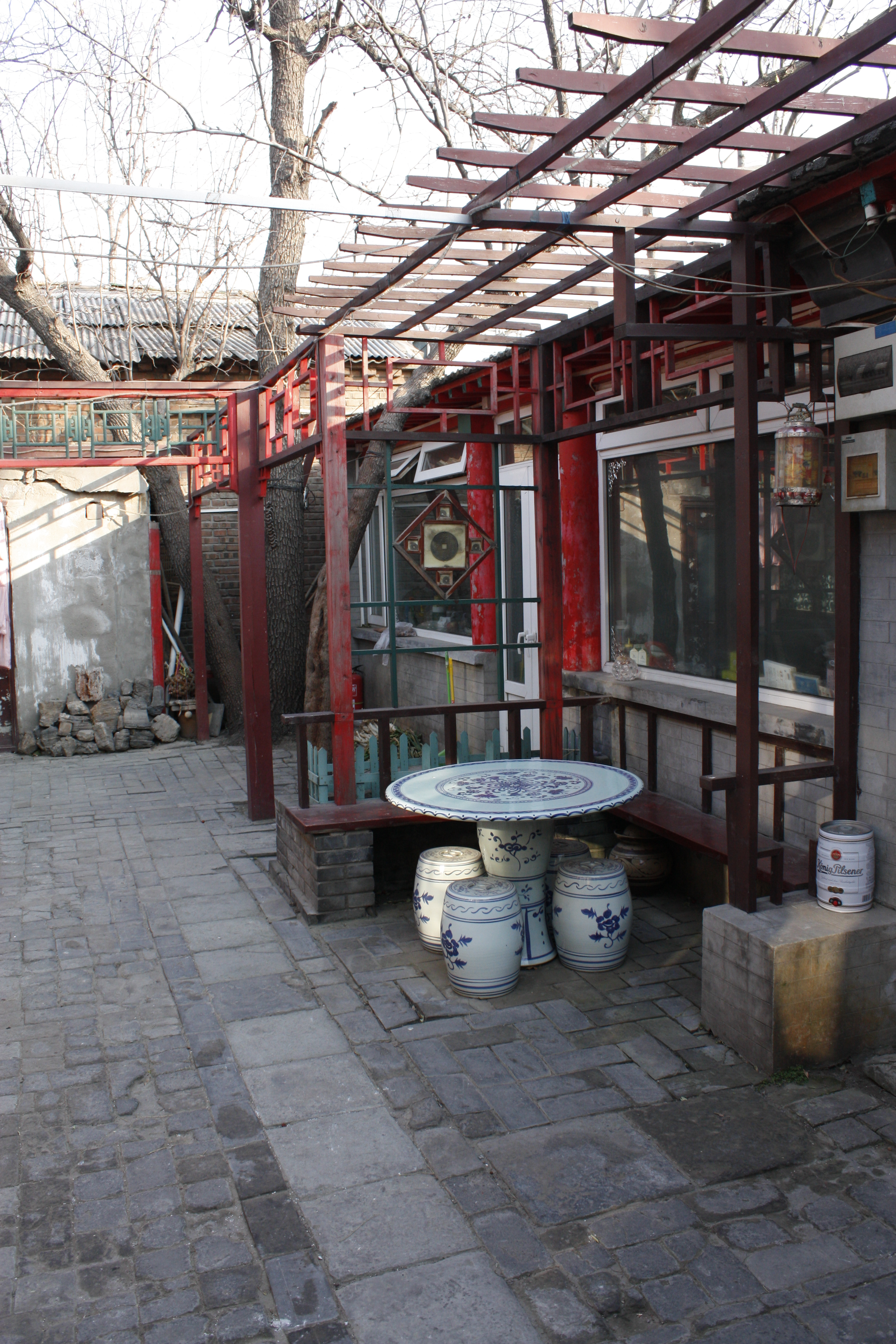Att boende i hutongerna öppnar upp sina hem för turister är något som tagit fart i takt med ökad turism. Vår riksha parkerar utanför en smal öppning mellan två stenväggar och vi blir visade in till en innegård. Runt den lilla gården ligger fyra eller fem låga byggnader, alla ägda och bebodda av samma familj. Förr var det mycket vanligt att en familj trängdes i ett av de små husen och att man delade den gemensamma gården med grannar. Det första vi möts av är ett par flådda höns upphängda att torka sida vid sida av tvätten. Några steg längre fram har man staplat ett flertal burar med olika sorts färgglada fåglar på varandra. En del av fåglarna har gått turistskola och lärt sig engelska hälsningsfraser som ”Hello” och Goodbye”. Överallt finns det katter, på fönsterbrädorna, på taken, på marken… Vi visas in i ett utav husen som rymmer ett vardagsrum och ett litet sovrum. Sovrummet är tillhörande familjens dotter som inte längre bor hemma. Man får lite kuliss-känsla – att de möjligtvis möblerat upp ett av husen i typisk ”hemma-miljö” för att visa upp för turister. De andra husen får man inte se och vi misstänker att det är där de bor ”på riktigt”. Men det är ett bra sätt för dem att livnära sig på turismen samtidigt som man ändå får en liten inblick i deras vardagsliv vilket är intressant.
