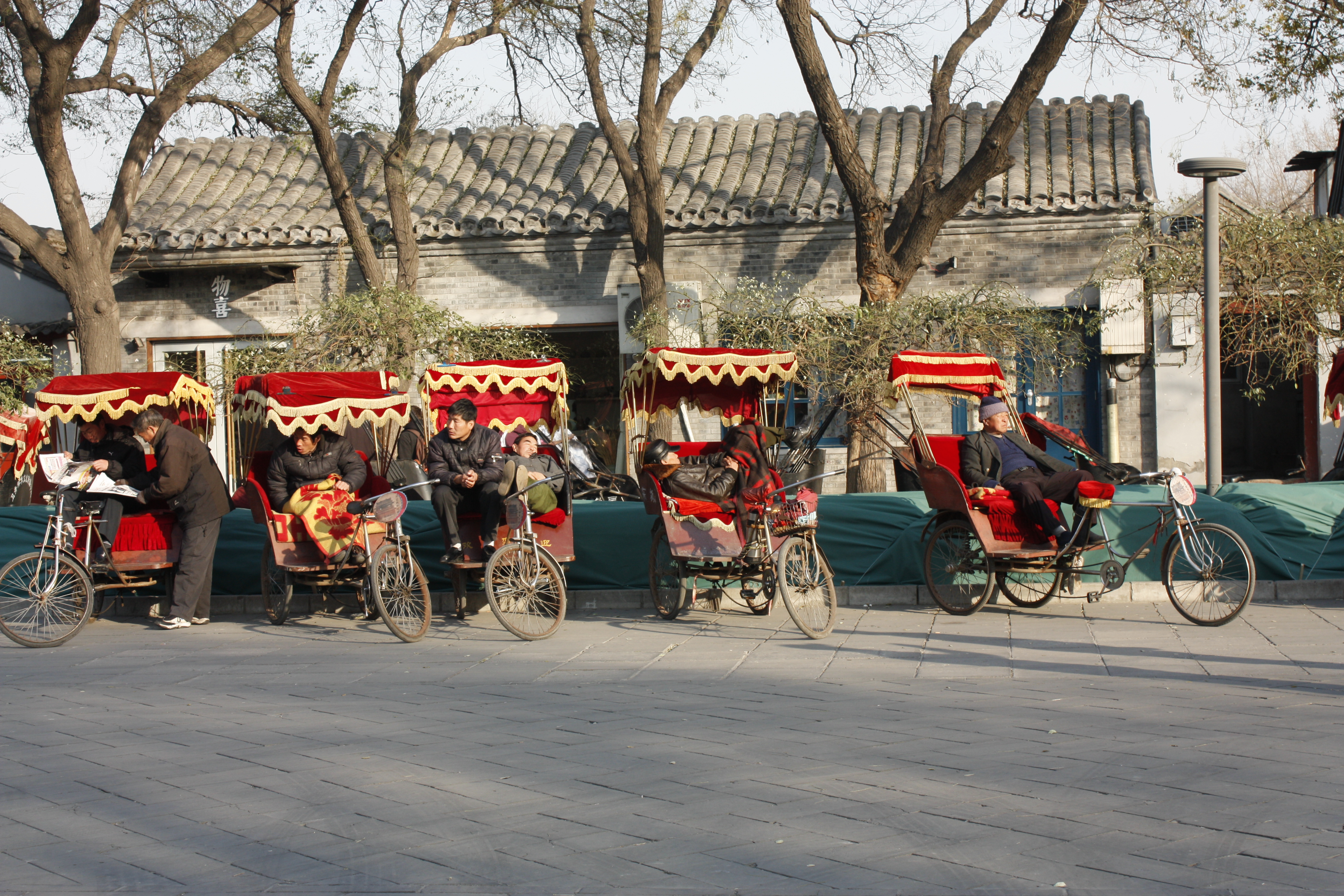 De gamla hutongernas genuina läge i närheten av Trumtornet och Förbjudna Staden har gjort det till attraktiv mark även för de mer förmögna. Vi stannar plötsligt till vid en klarröd port som vaktas av två kejserliga lejon. Ovanför de båda dörrarna har man karvat fyra stora stjärnor. Detta för att markera status. Det går inte att se in, bara skymta genom en smal glipa vad som tycks likna en stor trädgård. Sida vid sida av detta förmodade välbärgade hem står de ”vanliga” hopsjunkna husen och slokar lite lätt med sina tak. Kanske undrar de hur länge de ska tillåtas stå kvar…