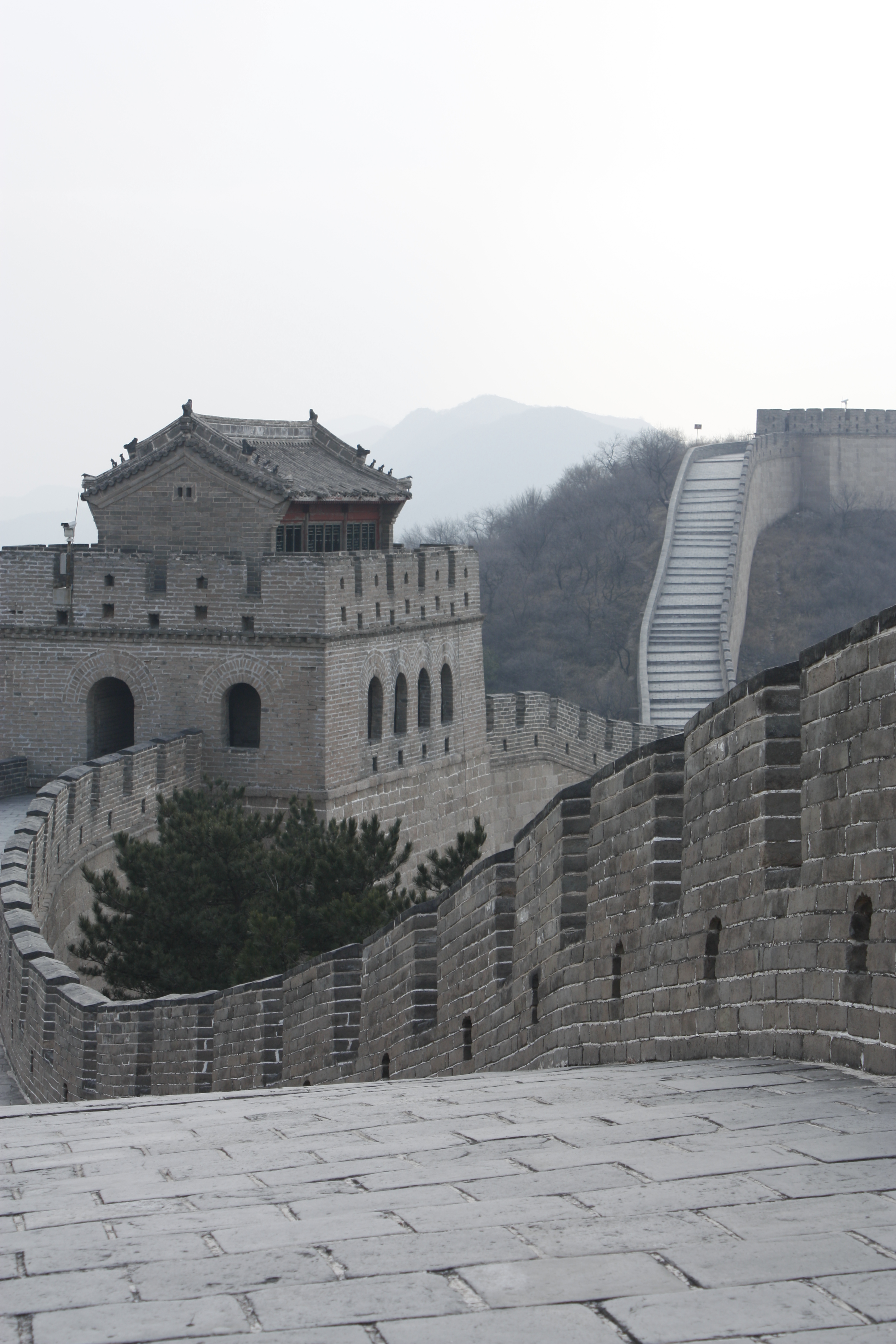 Badaling är den turisttätaste och mest lättillgängliga delen av muren. När vi kliver upp på första trappavsatsen möts vi av ett vägskäl. Antingen kan vi ta till höger, som är planare och som 95% av turisterna väljer, eller så kan vi ta till till vänster och vara näst intill ensamma. Vi väljer att inte följa strömmen. Den vänstra delen visar sig vara mycket brant på sina ställen vilket förklarar avsaknaden av folk. Men trots att det stundvis är enormt ansträngande att kämpa sig uppför så är det alla gånger värt den exklusiva känslan av att vara ensam ”on top of the world”.