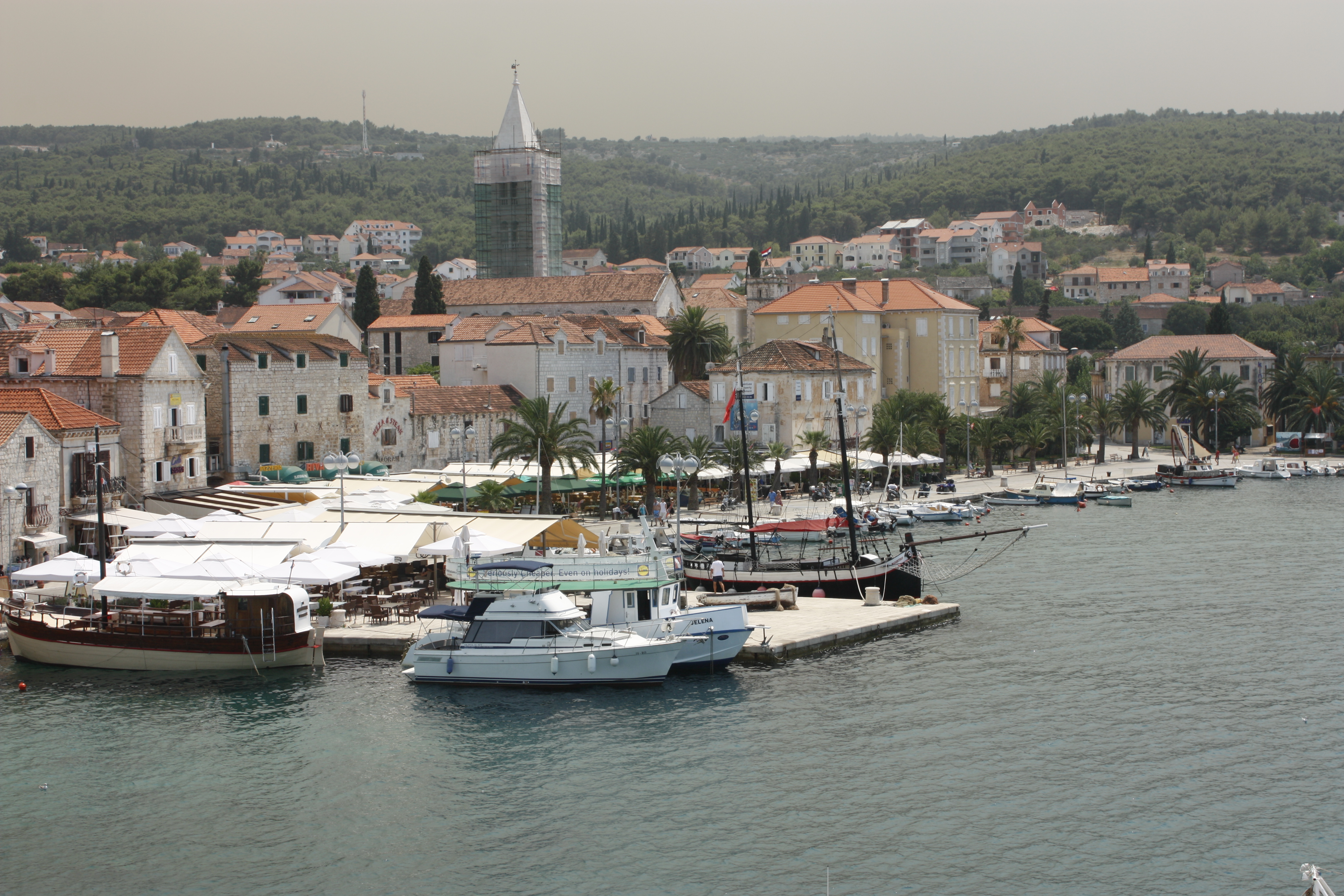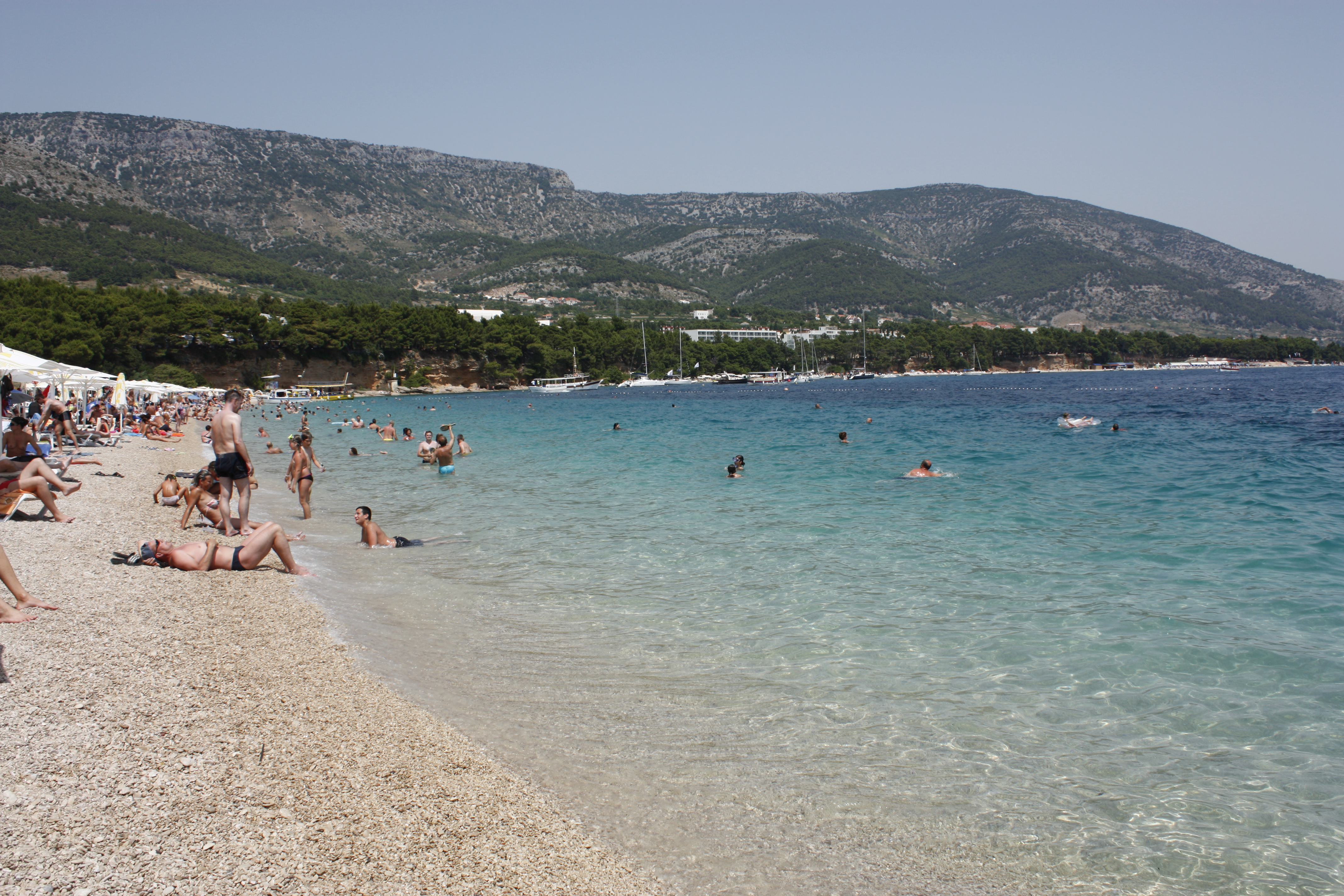 Något lättade och lite smått illamående (ja, det är lite varning för åksjuka) når vi Bracs, eller kanske till och med Kroatiens, mest fotograferade strand Zlatni Rat. Likt en tunga av vita stenar sticker strandremsan ut i det turkosa havet. Dock uppfattar man inte strandens unika form på så här nära håll, krävs nog någon typ av flygning för att verkligen se Zlatni Rat i sin rättvisa bemärkelse. Vattnet är klarare än klart och vi får en härlig eftermiddag. Dock är det otroligt mycket folk och det är inte svårt att se att detta är Bracs mest turistiska stad. Så vi är ganska glada att sedan ta bilen tillbaks till vår lilla fiskeby på andra sidan.