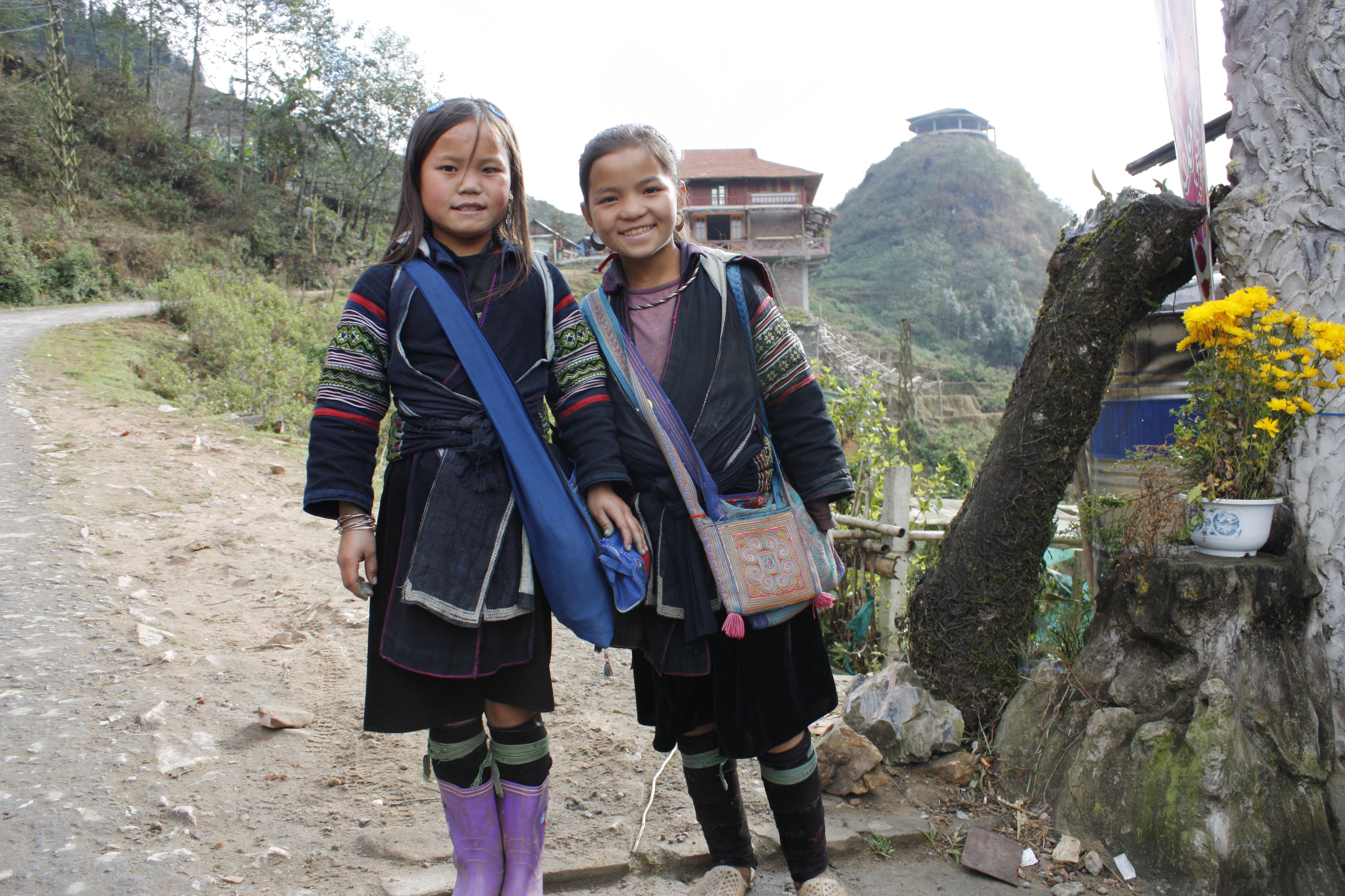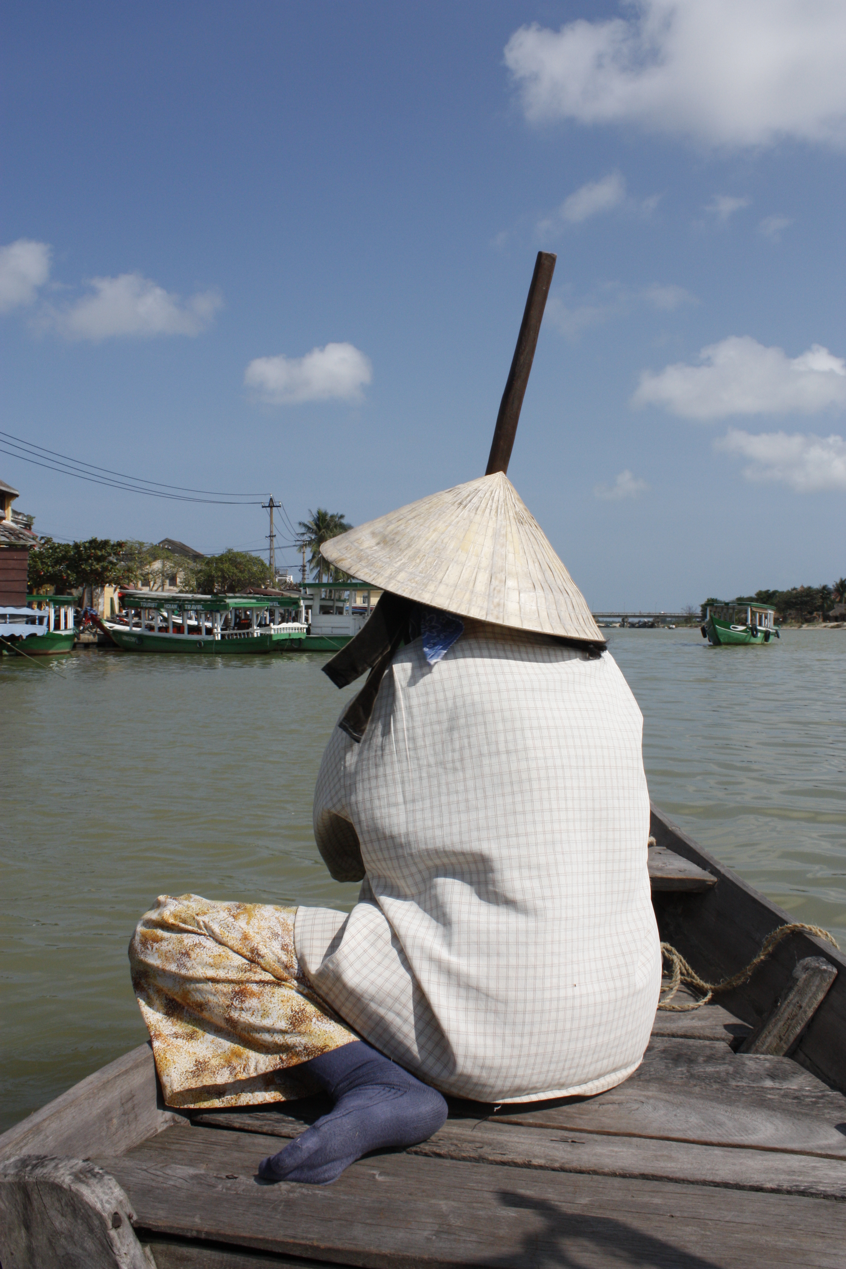 Inne i hamnen trängs massor av utflyktsbåtar, så kallade djonks. Vi är en lagom stor grupp på ca 15 personer och blir visade till en av de charmiga träbåtarna. Vid första intrycket ter det sig som omöjlighet att ta sig förbi alla båtar och ut på havet men det visar sig att de har ett välfungerande system för detta och snart är vi på väg. Det finns över 3000 sockertoppsformade öar i bukten. Som vi väntat oss så är det ganska disigt vilket skymmer sikten till de öar som ligger längre bort, men framför oss reser sig flera spetsiga skulpturer ur vattnet. Lite hemlighetsfullt och lite overkligt. Mellan vissa av öarna ligger flytande fiskebyar. Vi ser fler flottar med små hus på och med båtar förankrade intill. Vi stannar intill en av fiskebyarna och lämnar vår djonk för en stund för en tur i en mindre båt. Att åka alldeles intill öarna ger en mycket mäktigare upplevelse.